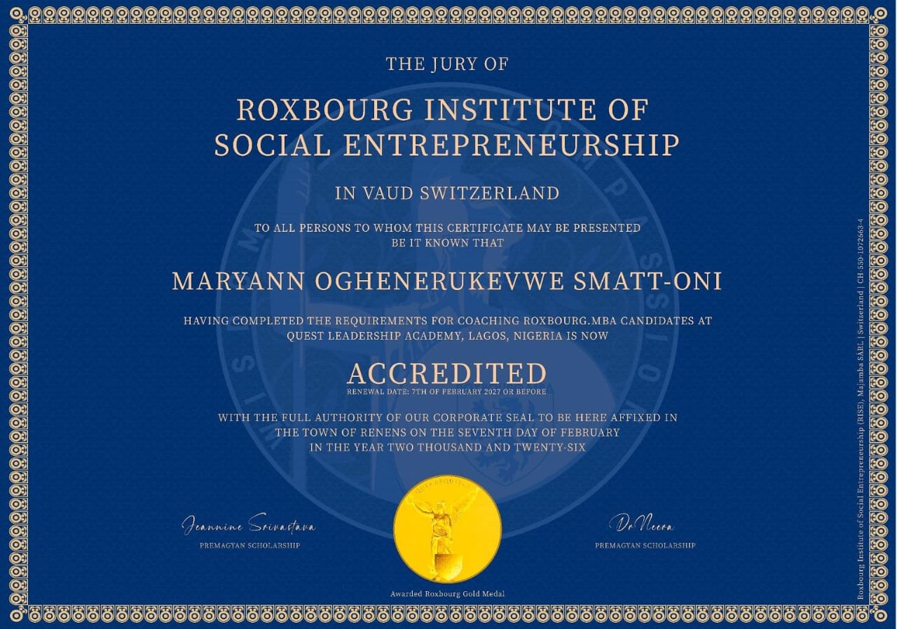 The Academy has officially received international accreditation and has been recognised as a Gold Rated Academy by the Roxbourg Institute of Social Entrepreneurship, Switzerland.